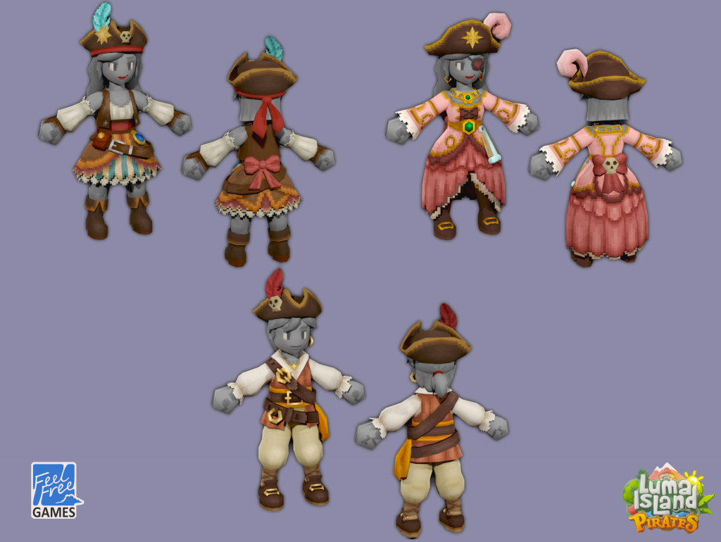 A collection of outfits, hairstyles and accessories I created for Luma Island. These clothing sets allow players to further personalize their characters’ appearance. Some of them can be unlocked by playing the pirate-themed expansion. ¿Te gusta? Compártelo :)